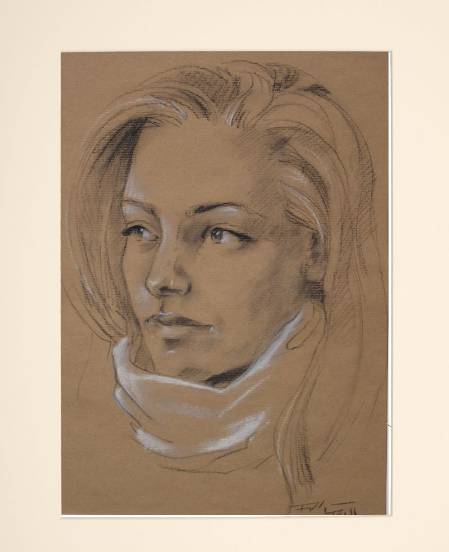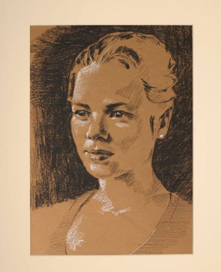 Portrait-Zeichnung nach Foto in Bleistifttechnik oder mit Kohle auf Papier. Format DIN A3.