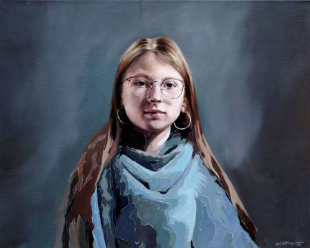 Portrait nach Foto in Ölmaltechnik auf Leinwand.